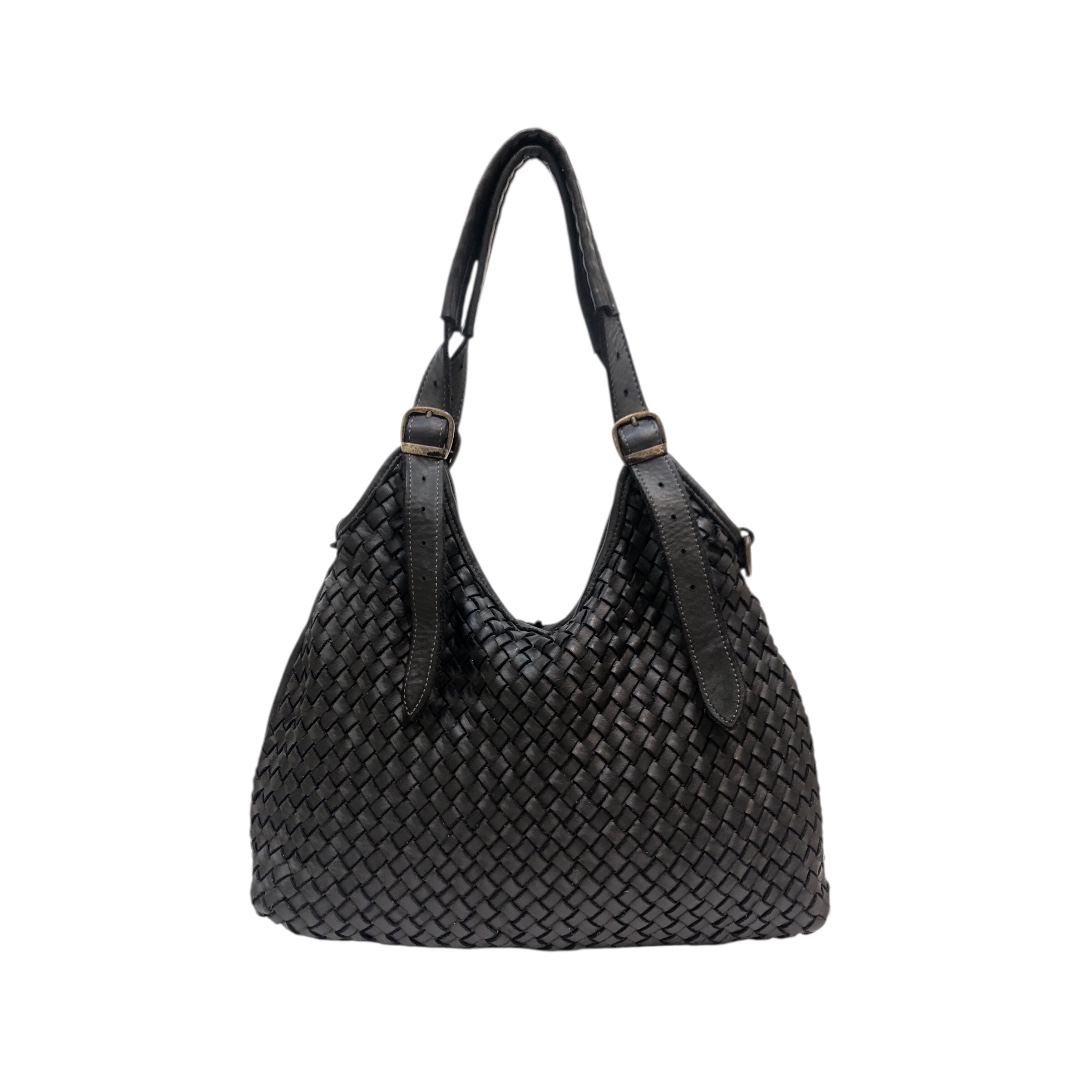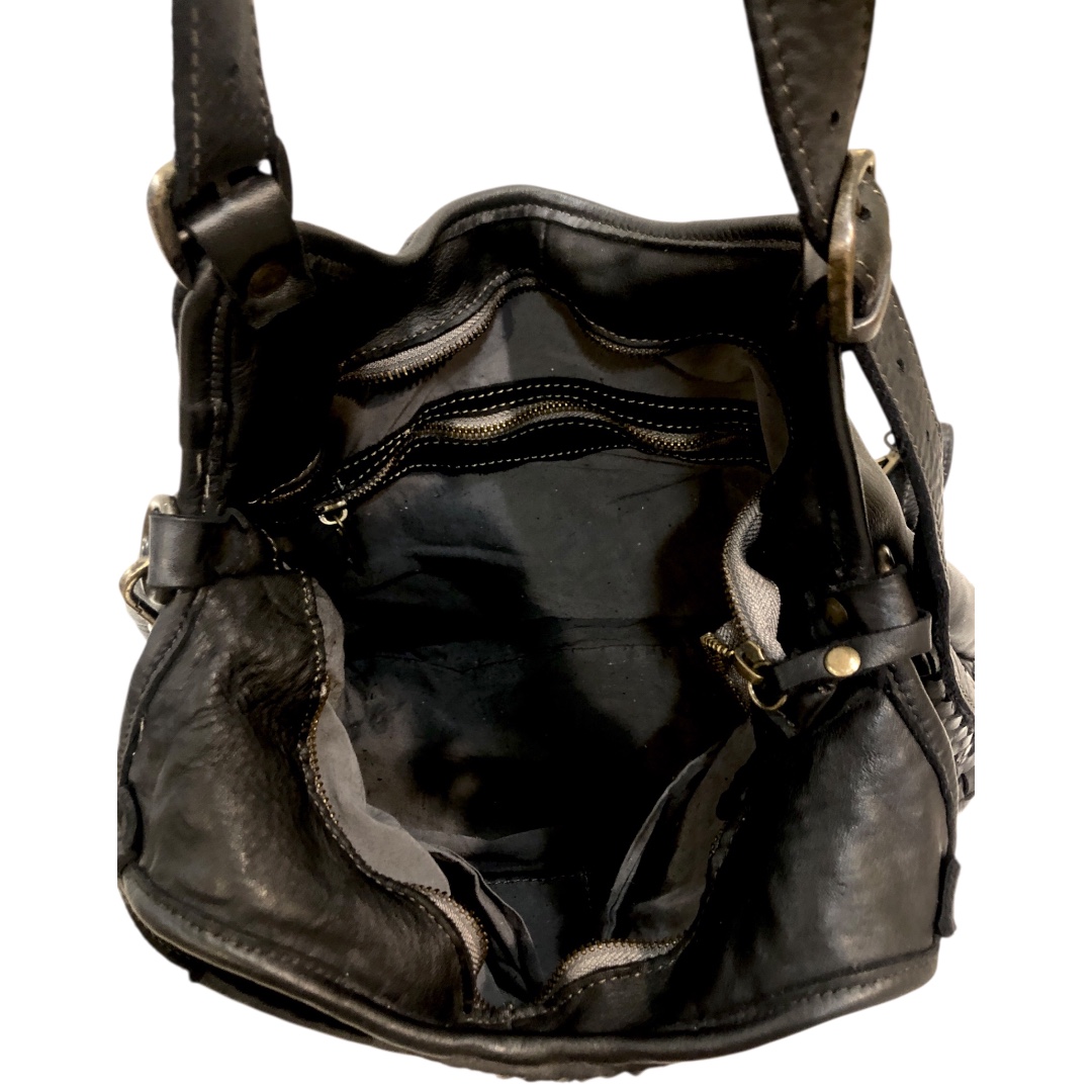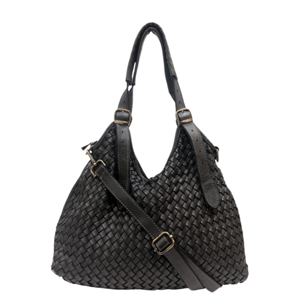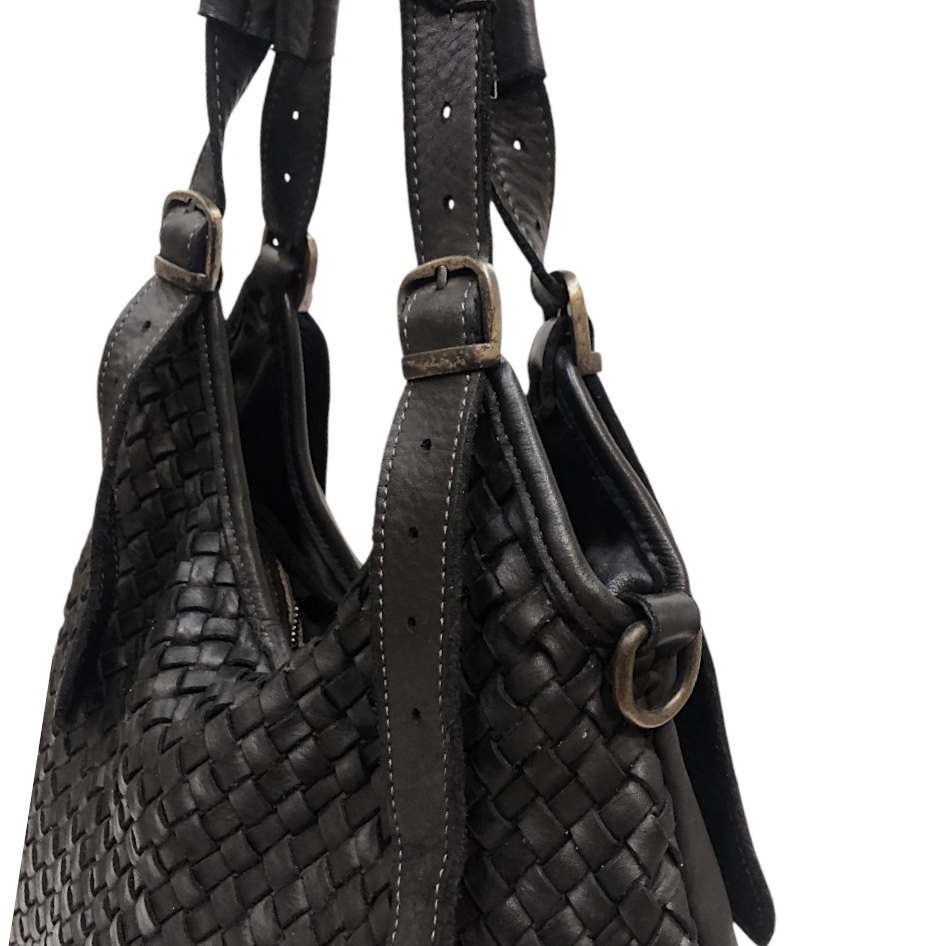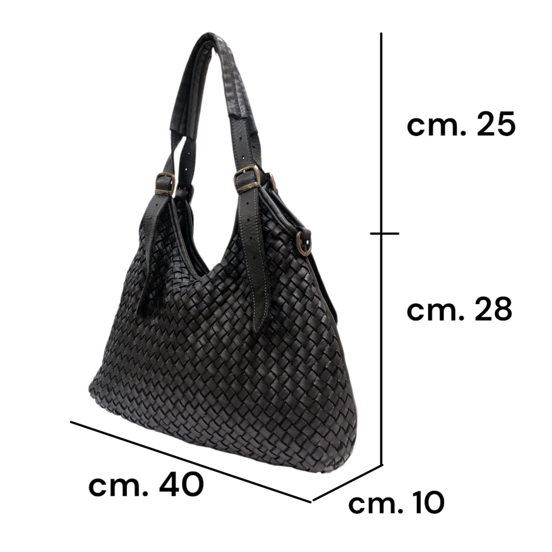 Meravigliosa pelle invecchiata intrecciata a mano e tinta in capo, questa particolare lavorazione conferisce alla borsa uno stile vintage. Tutto quello che può sembrare un difetto è frutto di una sapiente lavorazione artigianale dei nostri pellettieri e realizzata in Italia.